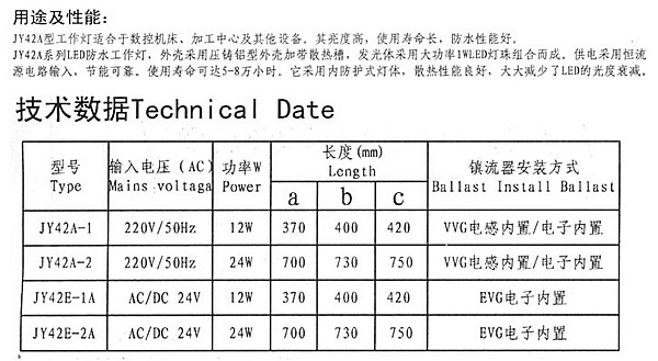 JY42E-1A2A機床工作燈